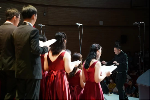 当晚,在助理指挥、团长梁子竹的指挥下,合唱团员们随着音乐将徐志摩的诗作《我有一个恋爱》娓娓道来,“任凭人生、是幻是真”,时而婉转忧郁、时而昂扬澎湃的旋律诉说着作者内心中对爱、美、自由、理想和信仰永恒的向往与追求。